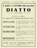 Diatto took part in races from 1905 and, in 1925 could proudly lay claim to more than three hundred podium postions in its advertisements, including the victories in its category and the design contests, won on circuits all round the world. Until 1925 - the year in which the Company officially retired from racing - Diatto achieved more victories than any other manufacturer, conquering the podium at races like the Le Mans 24 Hours, the Monza 24 Hours, the Monza Autumn Grand Prix, the Brooklands 6 Hours, the MilanSanremo, and the Targa Florio, with the greatest champions of the time at the wheel: Tazio Nuvolari, the Marquis De Sterlich, Emilio Materassi, Alfieri and Ernesto Maserati, Gastone Brilli Peri, Giulio Aymini and many others. Competitions |
