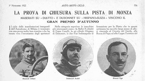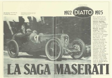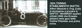 Agli inizi degli anni venti, Alfieri ed Ernesto Maserati sono contesi per la loro bravura, come piloti e come progettisti. Diatto crede nel loro talento e nel 1922, superando le offerte di case concorrenti, li chiama a dirigere la Squadra Corse, dando l’avvio ad anni di fruttuosa progettazione motoristica, gratificata dai successi nelle competizioni. Alfieri Maserati, con una Diatto 3.000, nel novembre 1922 conquista l’Autodromo di Monza, vincendo il Gran Premio d’Autunno - 400 km. alla media di 125 Km/h, tenendo dietro il fortissimo Ugo Sivocci su Alfa Romeo 3.000 -. E’ il primo di una serie di importanti successi, realizzati anche nelle gare su strada, come le durissime crono-scalate Parma - Poggio di Berceto e Aosta - Gran San Bernardo, vittorie replicate per due anni consecutivi. I fratelli Maserati, assorbiti dal loro prestigioso incarico con la Diatto, sempre più assiduamente soggiornano a Torino, per progettare, collaudare e gareggiare con le Diatto da corsa.