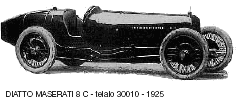 Nel 1923 l’ing. Coda, direttore e progettista della Diatto, realizza 2 motori sperimentali 8 cilindri in linea, 4 litri, accoppiando due blocchi Diatto Tipo 20 di serie. Tra il 1924 e il 1925, Alfieri Maserati, sotto la guida dell’ing. Coda, che chiama “il mio maestro”, sull’esperienza dei prototipi, progetta e costruisce un nuovo motore Diatto, con cilindrata ridotta a 1995 cc. E’ il primo 8C Diatto costruito da Maserati, motore in alluminio monoblocco in linea, bi-albero, con 2 carburatori Memini e compressore tipo Roots; un’architettura così ben riuscita, che Maserati, quando si metterà in proprio, sfrutterà per molti anni. Nasce la leggendaria 8C Diatto Grand Prix compressore -160 CV - carrozzata da Schieppati, che Maserati presenta a Monza il 14 giugno 1925, in occasione della fondazione, da parte dei sostenitori della Diatto, dello storico “Club dei cento all’ora”.