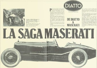 Alla “Targa Florio” del 1926, Maserati è iscritto con una Diatto 2 litri 8C Grand Prix compressore. Invece si presenta in gara, con la Sua prima Maserati “Tipo 26”, che è una Diatto Grand Prix modificata, con motore ridotto da 2000 a 1500 cc, per adeguarsi alle prescrizioni del nuovo regolamento internazionale. Le Diatto Grand Prix, evolute sotto lo stemma del Tridente, per tanti anni ancora saranno vittoriose, riconfermando la loro superiorità progettuale e tecnologica (consulta sul sito, i documenti originali Diatto-Maserati). Molti gentleman-driver, quando Diatto nei primi anni trenta cesserà la produzione, inizieranno a portare le loro Diatto da corsa, ancora competitive, dai fratelli Maserati.